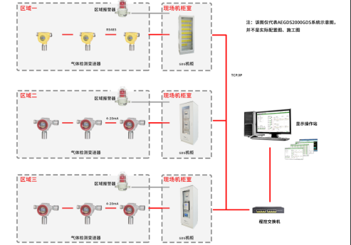 區域控制層:配置 AEGDS2000 雙屏機柜,最大支持 500 路 RS485 信號接入,通過 60 分區管理功能,精準定位泄漏區域(如合成車間 B 區第 5 工位)。