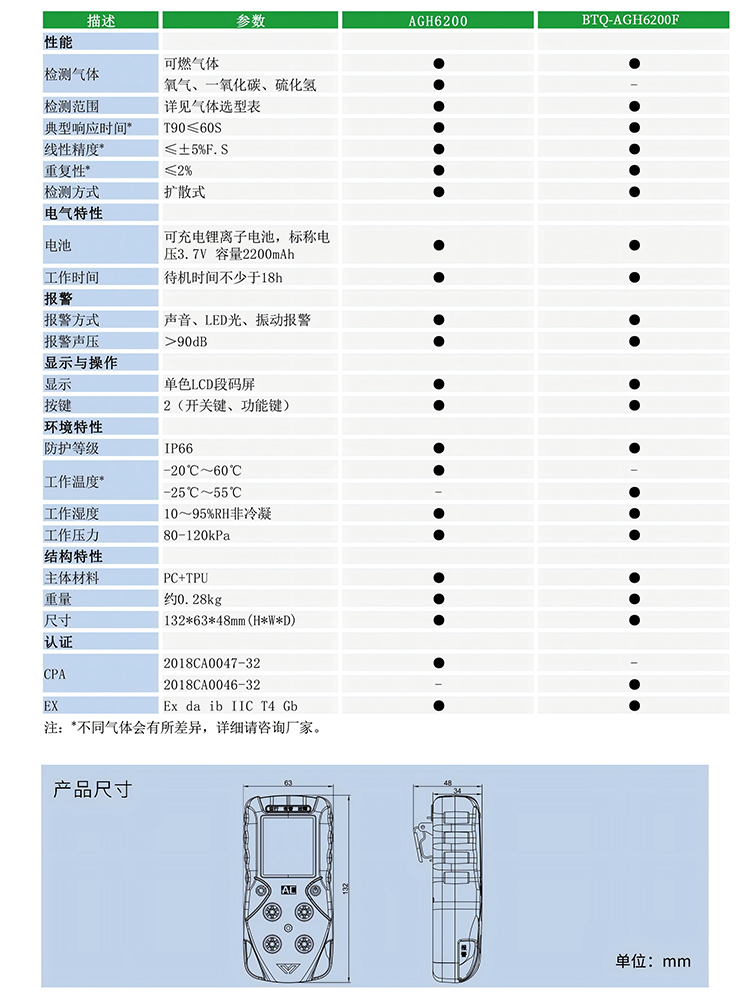 | 檢測范圍 | 詳見氣體選型表 | ● |