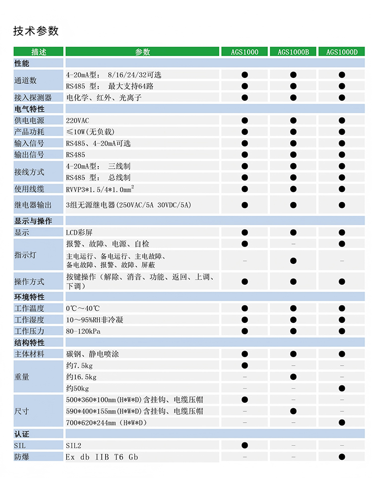 | ● AGS1000D為防爆款氣體報警控制器,可滿足不同工業場所的需求。 |