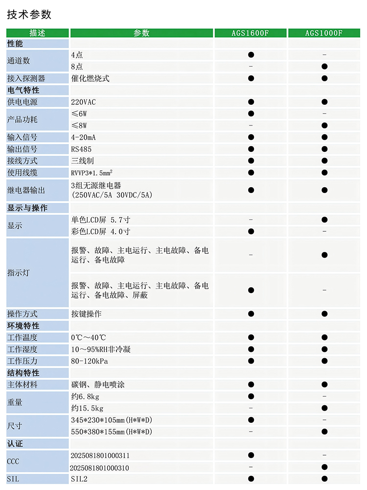 | 可燃?xì)怏w報(bào)警控制器 艾伊科技AGS1600F型可燃?xì)怏w報(bào)警控制器專用于配接固定式可燃?xì)怏w探測器使用。產(chǎn)品及對應(yīng)探測器均通過國家CCC消防認(rèn)證,可實(shí)現(xiàn)監(jiān)測報(bào)警,并且內(nèi)置開關(guān)量,實(shí)現(xiàn)控制連鎖設(shè)備功能。根據(jù)不同的需求,廣泛應(yīng)用于石油、化工、能源、鋼鐵、冶金、燃?xì)獾刃袠I(yè)。 產(chǎn)品通過國家CCC消防認(rèn)證。 大屏幕LCD圖像顯示,顯示內(nèi)容豐富。 內(nèi)置多組開關(guān)量,可實(shí)現(xiàn)連鎖控制功能。 內(nèi)置UPS電源,可防止意外斷電導(dǎo)致的安全隱患。 壁掛式碳鋼外殼,堅(jiān)固耐用。 可與GTYQ-Anr、GTQ-AF系列可燃?xì)怏w探測器配套組成氣體報(bào)警系統(tǒng)。
