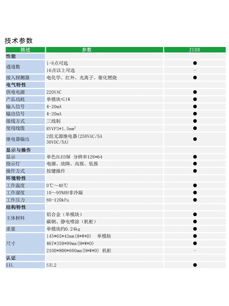| JUDD型單通道氣體檢測控制器為標(biāo)準(zhǔn)模塊式控制器,每個(gè)模塊均具備獨(dú)立顯示功能,根據(jù)接入數(shù)量的不同,可分為壁掛式和機(jī)柜式。控制器內(nèi)置開關(guān)量輸出,可配接4-20mA信號AG系列有毒氣體,適用于石油、化工、能源、鋼鐵、冶金、燃?xì)獾刃袠I(yè)。 |